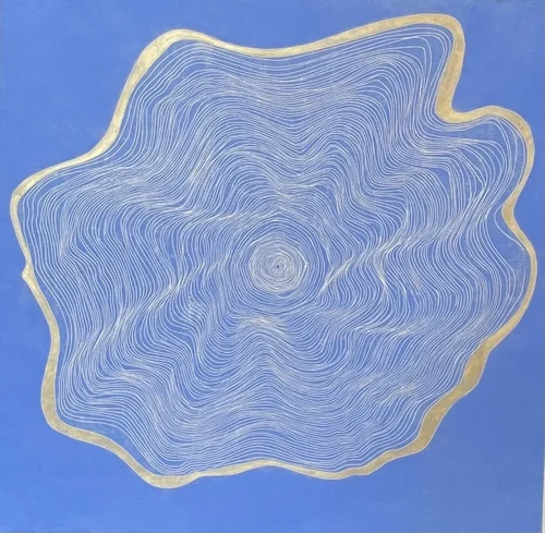 • Circles in print embody the movement of water, the invisible pulsating heart and the esonance of voice.